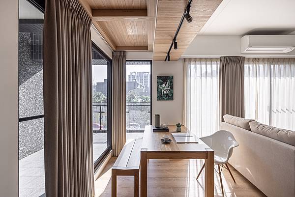 "沐光之屋"希望提出的是一種秋天的住家氛圍, 在色彩 建材 設計塑型, 都思考了, 如何逐步漸序引導進入空間的人, 將心境置放於室內呈現的感受, 與戶外的景緻, 得到具有心理溫度的放鬆